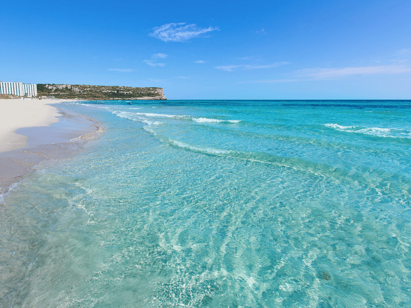 La playa de Son Bou es sencillamente magnífica: un arco de tres kilómetros de arena fina y dorada, bordeado de dunas y aguas cristalinas de color turquesa. La suave pendiente del fondo marino la hace ideal para niños y nadadores con poca experiencia. Hay socorristas, sombrillas, deportes acuáticos y chiringuitos disponibles durante todo el verano.